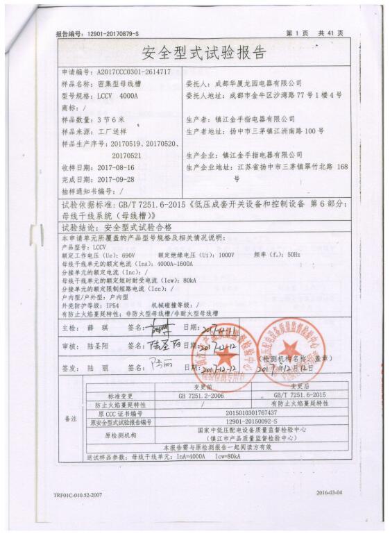 LCCV 密集型母線槽(1600A)試驗報告
